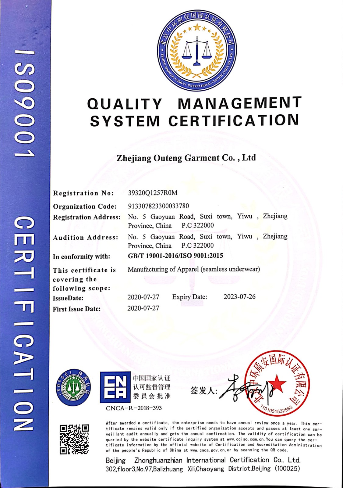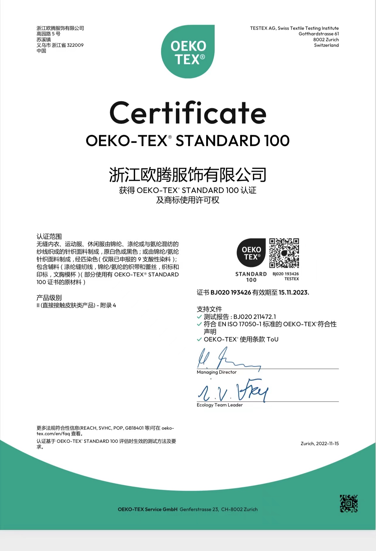浙江歐騰服飾有限公司位于世界小商品之都-義烏。創(chuàng)立于2015年,是一家專業(yè)生產(chǎn)無縫針織運動服飾和內(nèi)衣的工貿(mào)一體企業(yè),擁有自主出口權(quán)。 工廠的占地面積約16000平方米 ,引進了大型圣東尼、高騰等多種先進的制衣設(shè)備300余臺。月產(chǎn)能可達90萬件。 歐騰服飾每年投入近百萬資金打樣開發(fā)新產(chǎn)品,有著一支高素質(zhì)設(shè)計、技術(shù)員工隊伍。工廠先后通過了ISO 9001質(zhì)量管理體系認證、BSCI認證、GRS認證、OEKO-TEX國際生態(tài)紡織品認證等多項專利檢測報告。可提供OEM&ODM服務(wù)。歐騰服飾以一套完整、科學的質(zhì)量管理體系,生產(chǎn)的服裝從原材料紗線到成衣,質(zhì)量完全能夠滿足國內(nèi)、國際質(zhì)量要求。獲得了客戶一致好評。工廠先后獲得省科技型企業(yè)、國家高新企業(yè)、義烏市誠信講信用單位、規(guī)上企業(yè)、信用AAA級等榮譽。